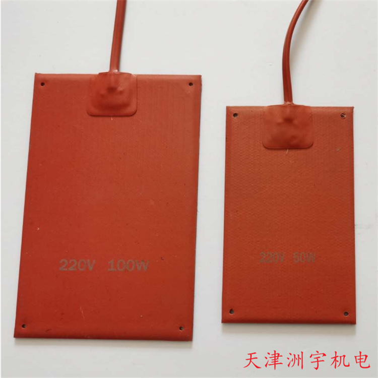 2.硅膠電熱器件可工作與受壓狀態(tài),即用輔助壓板使其緊貼受熱表面。熱傳導良好,在工作區(qū)溫度不超過240℃時,其電流密度可達3W/c㎡。
