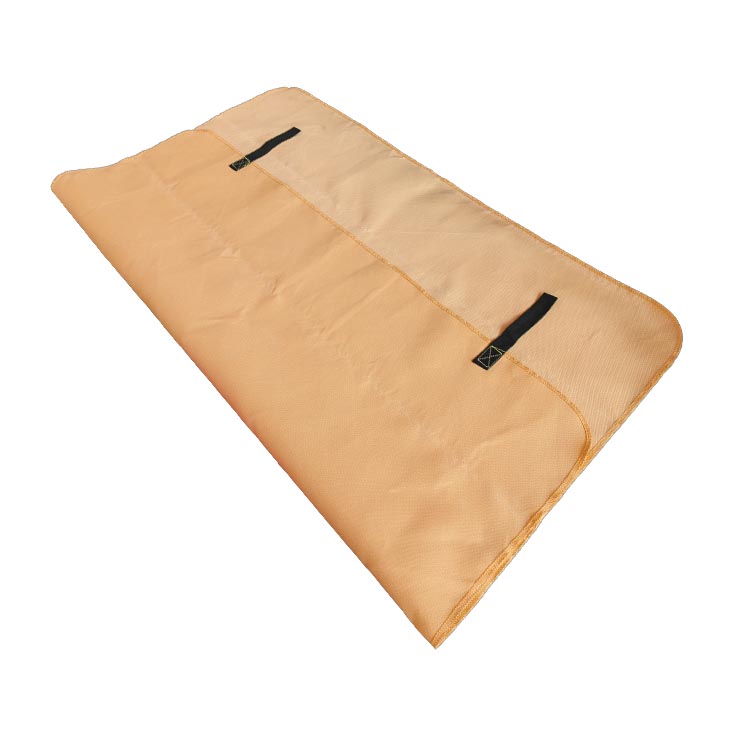 滅火毯是由玻璃纖維等材料經(jīng)過特殊處理編織而成的織物,能起到隔離熱源及火焰的作用,其特點是不燃、耐高溫(55-550℃),將其覆蓋火源、阻隔空氣已達到滅火的目的。